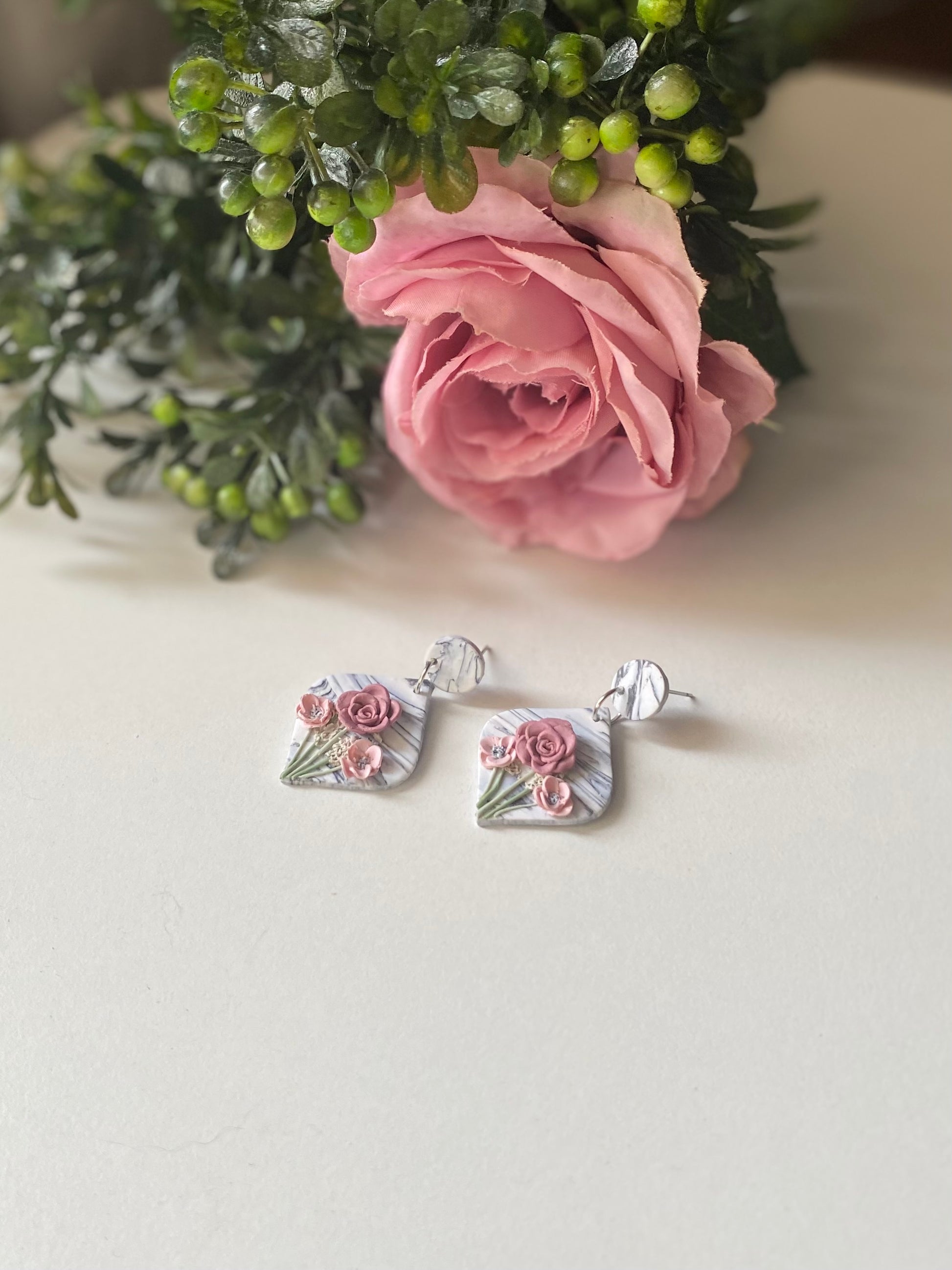 Introducing A Pink Spring-“Cloudy Spring” earrings, a unique addition to your jewelry collection. These one of a kind floral earrings are handmade with intricate attention to detail. Perfect for adding a touch of elegance and charm to any outfit. Don't miss out on this must-have piece.